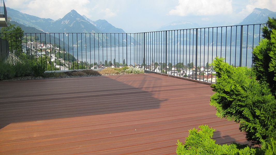 Der perfekte Terrassenboden vereint Ästhetik und Funktionalität in idealer Weise. Mit einer grossen Auswahl lässt sich eine individuelle und ansprechende Gestaltung realisieren, die nicht nur optisch überzeugt, sondern auch langlebig und pflegeleicht ist. Ein harmonisches Zusammenspiel von Natur und Technologie schafft eine einladende Atmosphäre im Aussenbereich, die zum Entspannen und Geniessen einlädt.